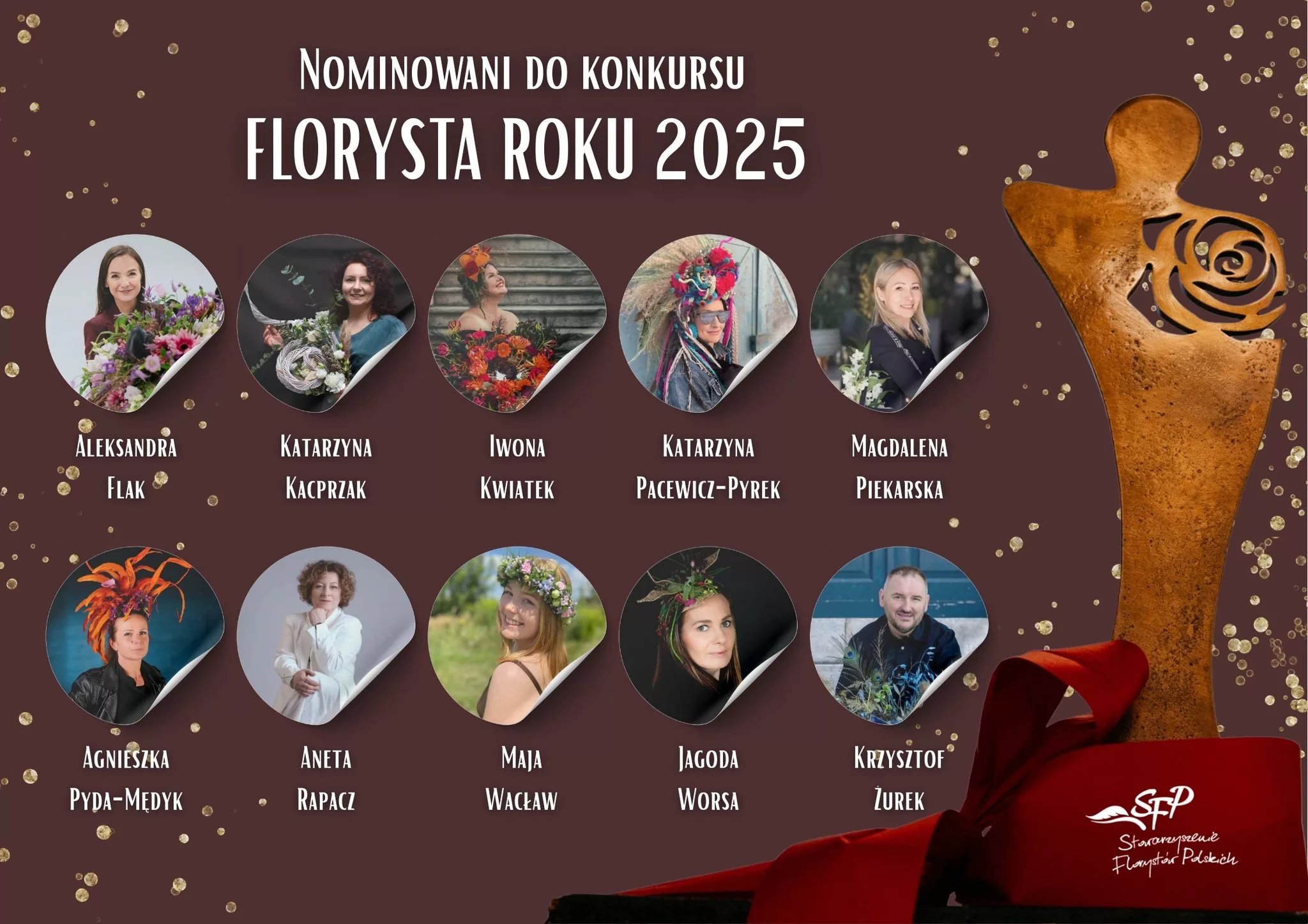 W połowie stycznia br. poznaliśmy nominowanych do kolejnej edycji konkursu Florysta Roku 2025. Teraz jury wyłoniło finałową trójkę. 15 marca, podczas uroczystego finału dowiemy się, kto zdobędzie statuetkę. Organizatorem wydarzenia jest Stowarzyszenie Florystów Polskich, a patronat medialny sprawuje portal miłośników kwiatów i roślin www.zakochaniwkwiatach.pl
