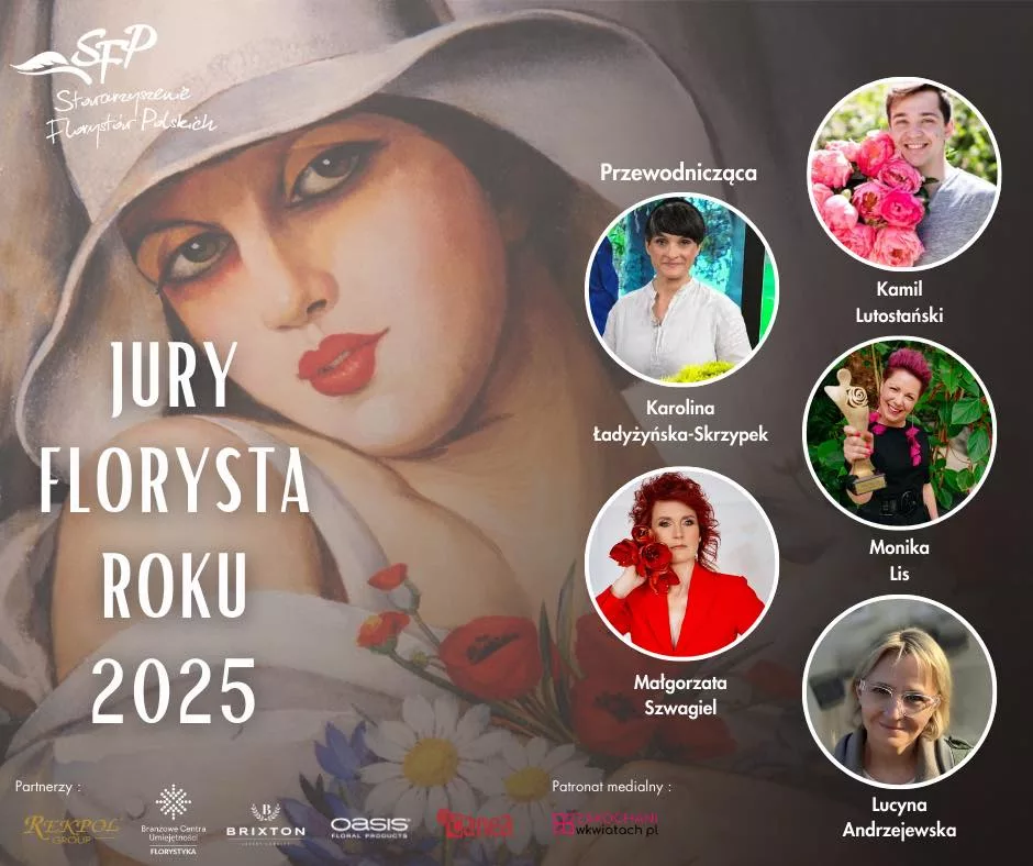 Skład Jury „Florysta Roku 2025” zasilili: Karolina Ładażyńska-Skrzypek – Green Sense, Kamil Lutostański, Monika Lis Floral Designer, Florysta Roku 2024, Małgorzata Szwagiel, Florysta Roku 2020 oraz Lucyna Andrzejewska, Kierownik Działu Kwiatów Wielkopolskiej Gildii Rolno-Ogrodniczej Franowo.