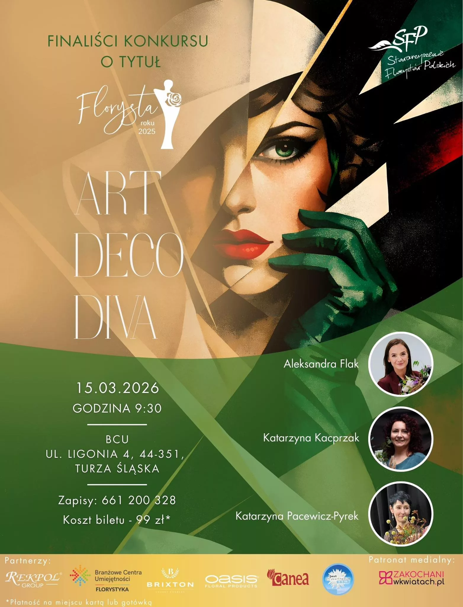 W efekcie obrad jury wyłoniona została trójka finalistek konkursu Florysta Roku 2025. Są to: Aleksandra Flak, Katarzyna Kacprzak oraz Katarzyna Maria Pacewicz-Pyrek. 15 marca br. będzie można zobaczyć je w trakcie finałowego pokazu „Art Deco Diva”, organizowanego w Branżowym Centrum Umiejętności w Turzy Śląskiej. We floralnych aranżacjach nie zabraknie kwiatów od partnerów wydarzenia, m.in. chryzantem ciętych od niderlandzkiej inicjatywy Just Chrys.