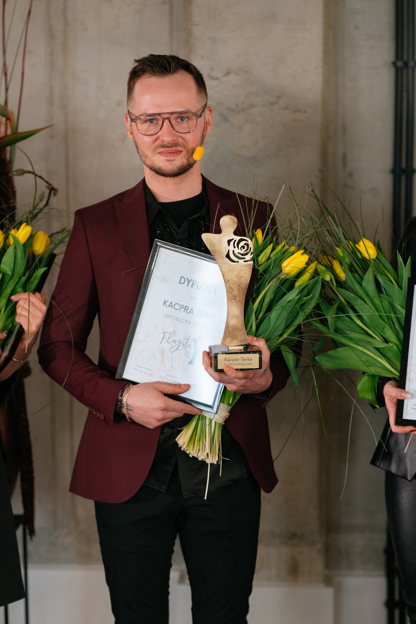 Po pokazie nadszedł czas na werdykt. Tytuł Florysty Roku 2023 oraz piękną statuetkę otrzymał Kacper Terka. Laureat czwartej edycji konkursu Florysta Roku jest właścicielem Kwiaciarni Euforia Lubasz, absolwentem Międzynarodowego Instytutu Florystycznego, inicjatorem wielu przedsięwzięć florystycznych skupiających przedstawicieli branży, w tym Festiwalu Kwiatów w Czarnkowie. Przed Kacprem rok pełen florystycznych wyzwań i wytężonej pracy we współpracy ze Stowarzyszeniem Florystów Polskich.