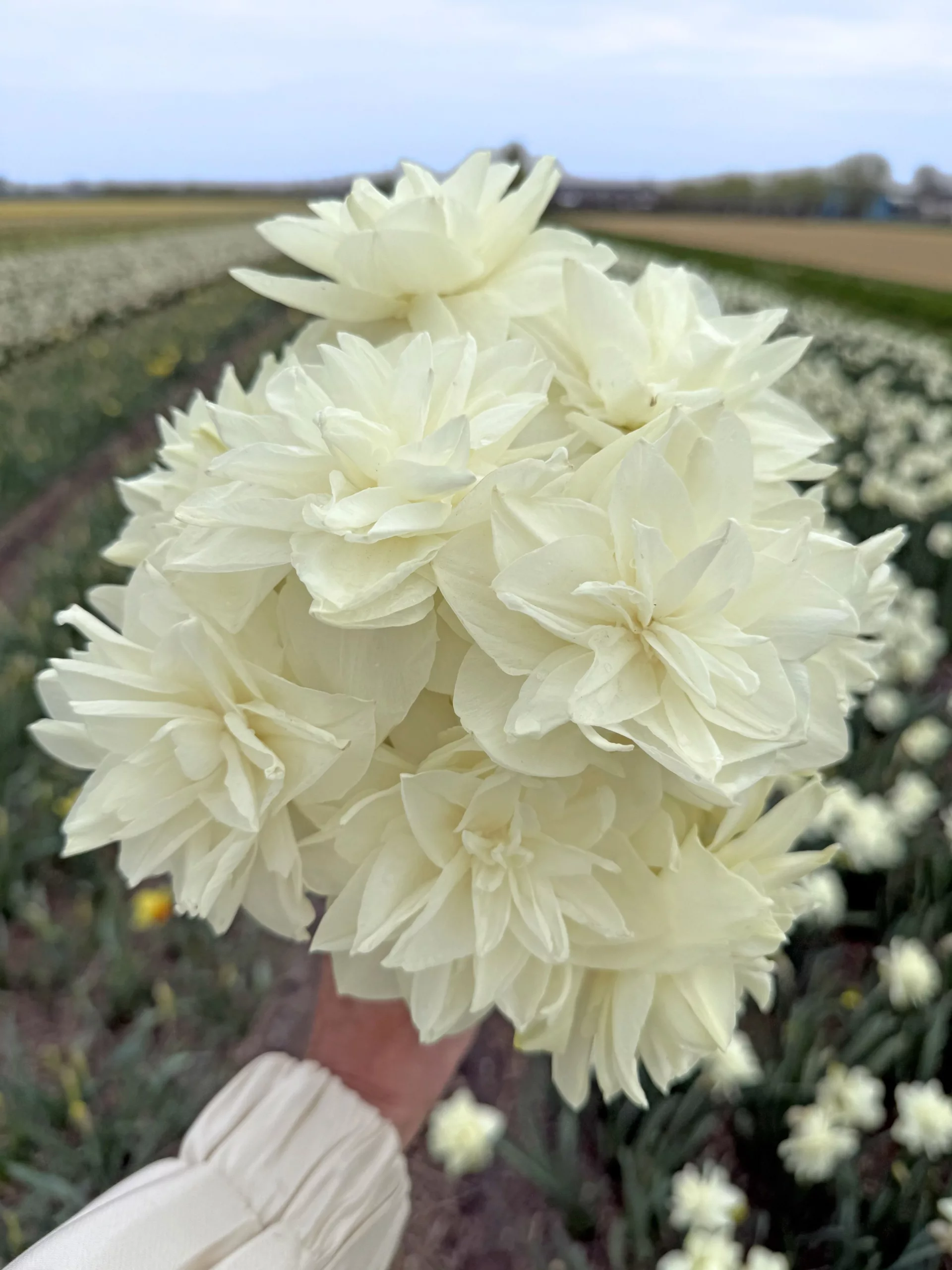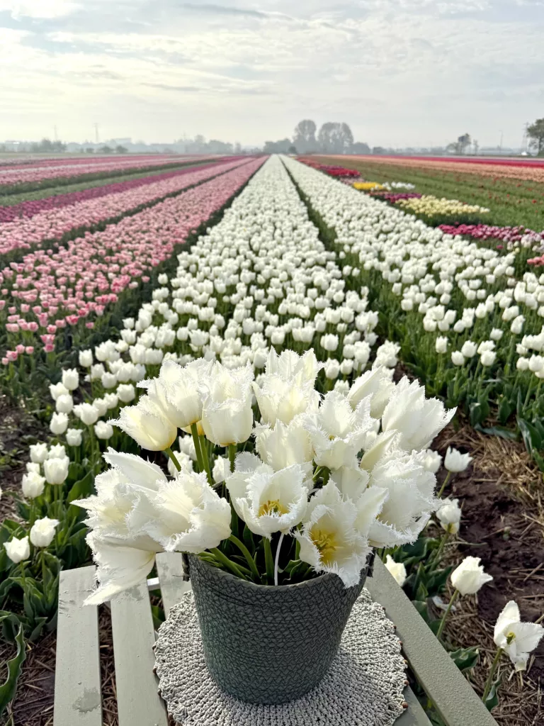 Ten subtelny odcień doskonale znajduje swoje odpowiedniki w świecie roślin, zwłaszcza wśród kwiatów cebulowych, które potrafią rozświetlić ogród już od najwczenniejszych dni wiosny. Do barwy Cloud Dancer najbliżej mają odmiany o czystej, świetlistej bieli: tulipany, narcyzy, czosnki ozdobne , jaskry oraz dalie. Białe kwiaty cebulowe są niezwykle uniwersalne — harmonijnie wpisują się w minimalistyczne ogrody, wprowadzają jasność do kompozycji naturalistycznych i pięknie kontrastują z zielenią liści.