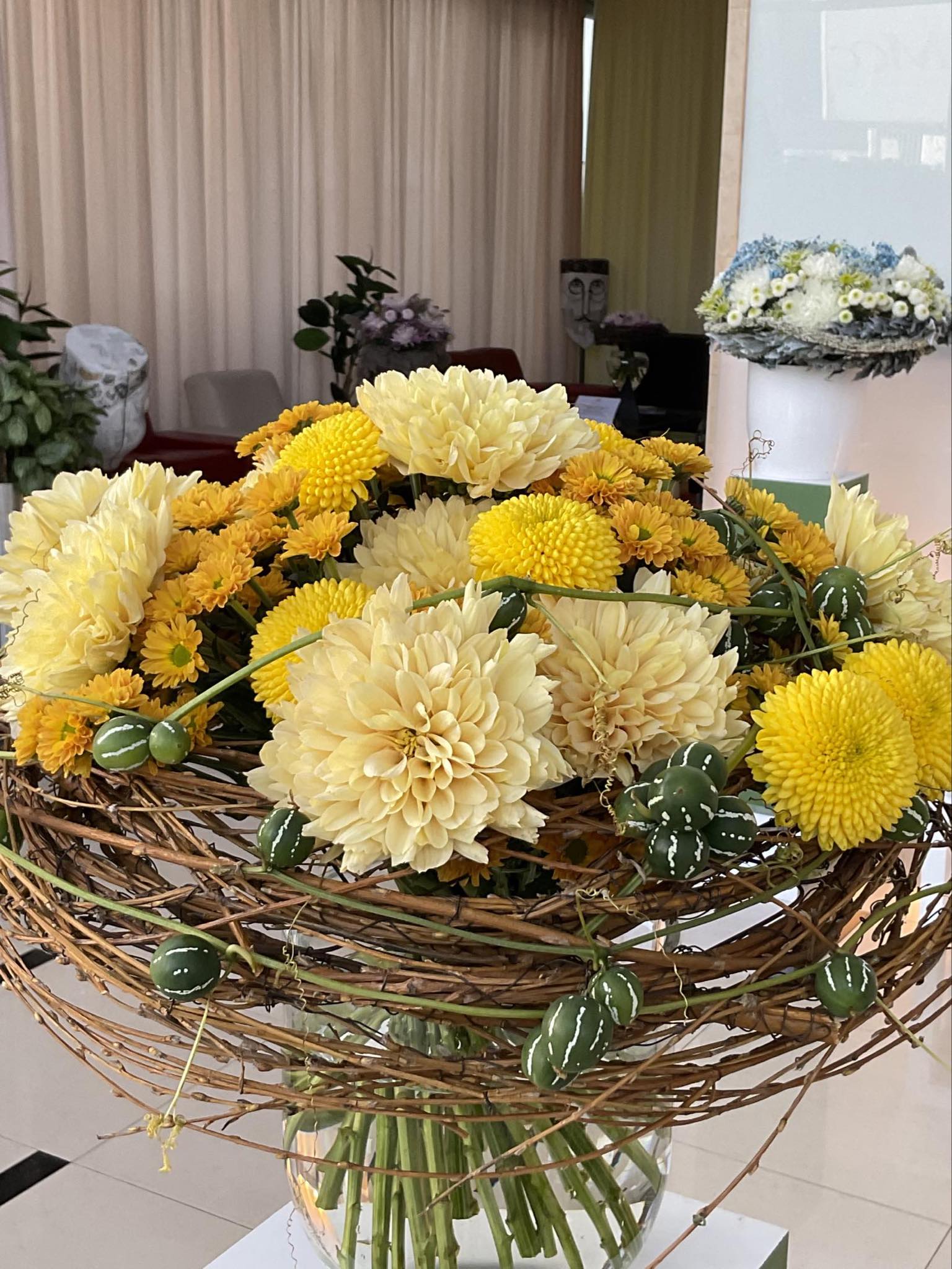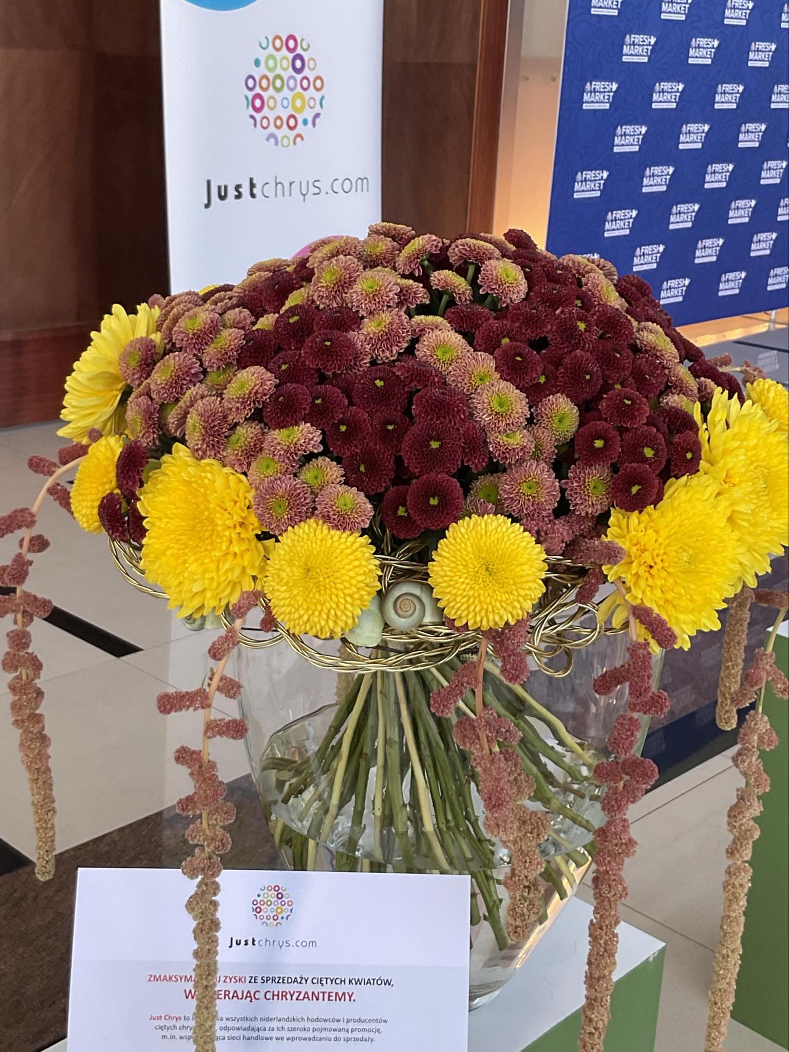 Przybyli na to wydarzenie goście mieli okazję podziwiać galerię kilkunastu bukietów biznesowych, które zostały wyeksponowane w głównym hallu oraz w strefie relaksu. Aranżacje były wykonane z bajecznie kolorowych chryzantem ciętych, przekazanych na tę okazję przez niderlandzką inicjatywę Just Chrys za pośrednictwem agencji public relations SIGMA International (Poland). Za projekty i wykonanie kompozycji odpowiadały uczestniczki grupy mistrzowskiej Międzynarodowego Instytutu Florystycznego pod kierunkiem Zygmunta Sieradzana, mistrza florystyki. Projekt, od strony technicznej, wsparli: Mazowieckie Centrum Florystyczne Rekpol oraz Rynek Hurtowy Bronisze.