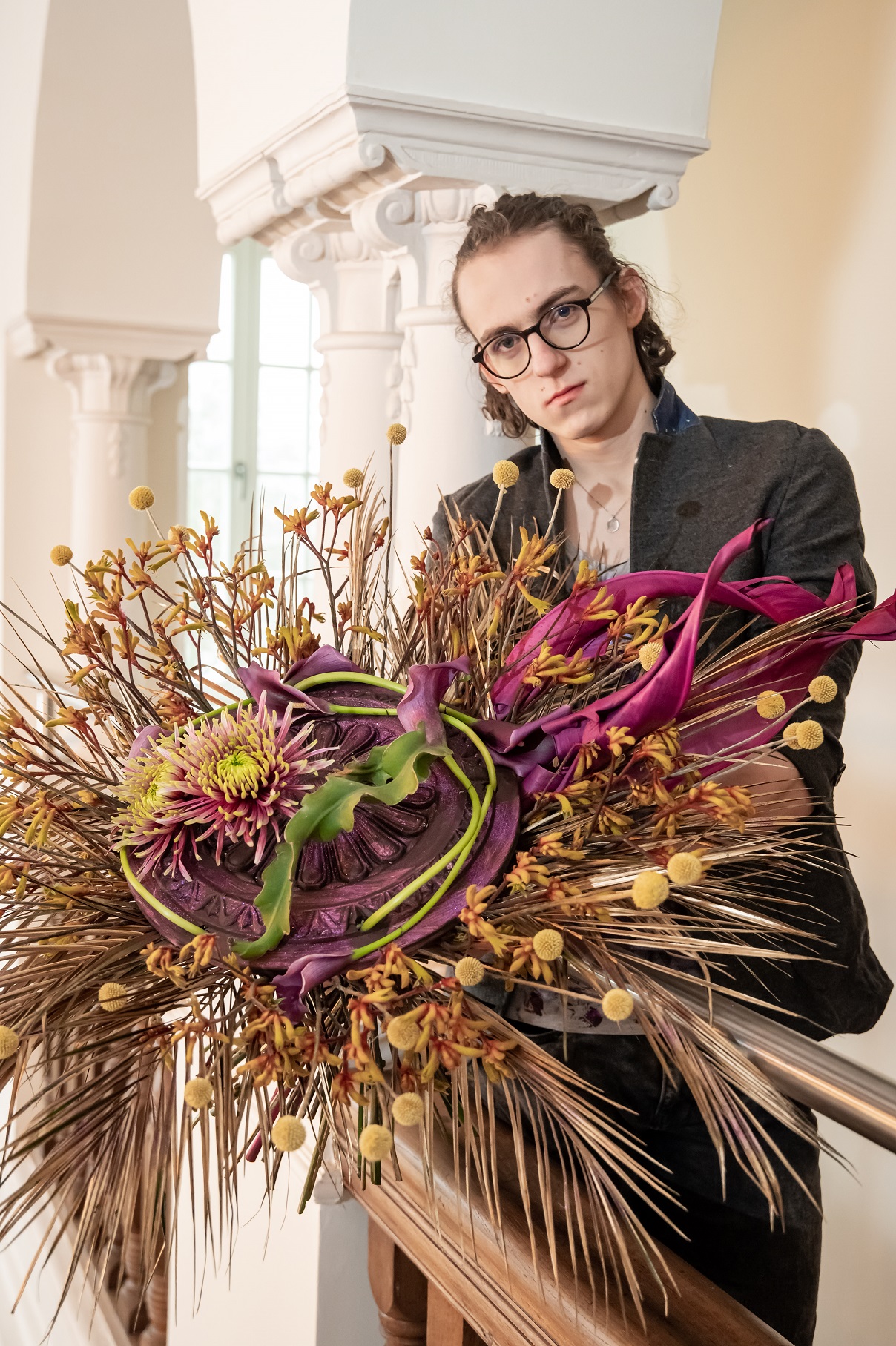 Aranżacje: Mirosław Drohomirecki Warsztatownia Daisy, Katarzyna Pierzak/Floo Art, Katarzyna Lis/Kwiaciarnia Katarzyna Lis. Fot. Paweł Duma Fotografia. Zdjęcia wykonano we wnętrzach Domu Praktyk Twórczych w Kostrzynie nad Odrą