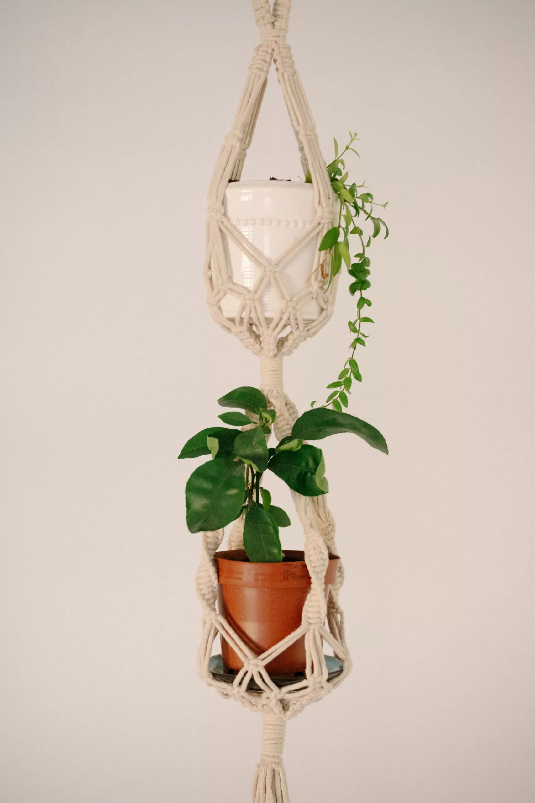 Makramowe kwietniki mają kilka praktycznych zalet: oszczędzają miejsce w małych mieszkaniach, pozwalają tworzyć zielone kompozycje na różnych wysokościach, wprowadzają miękkość do geometrycznych wnętrz, są lekkie i łatwe do przenoszenia. Najczęściej wykonuje się je ze sznurka bawełnianego – naturalnego lub barwionego. Coraz częściej spotyka się także sznurki z dodatkiem lnu czy juty, które nadają projektom bardziej rustykalny charakter.