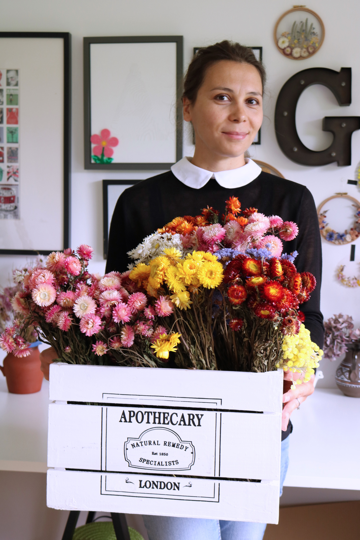 Olga Prinku to mołdawska artystka na stałe mieszkająca z rodziną w Wielkiej Brytanii. Na co dzień zajmuje się niecodziennym rękodziełem, mianowicie haftem na tiulu przy wykorzystaniu suszonych kwiatów i roślin.