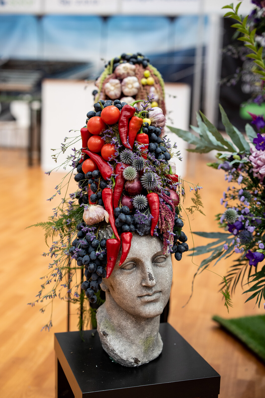 Poza ekspozycją goście targów mogli podziwiać również kreacje kwiatowo-warzywne i kwiatowo-owocowe dzieła Małgorzaty Szwagiel.
