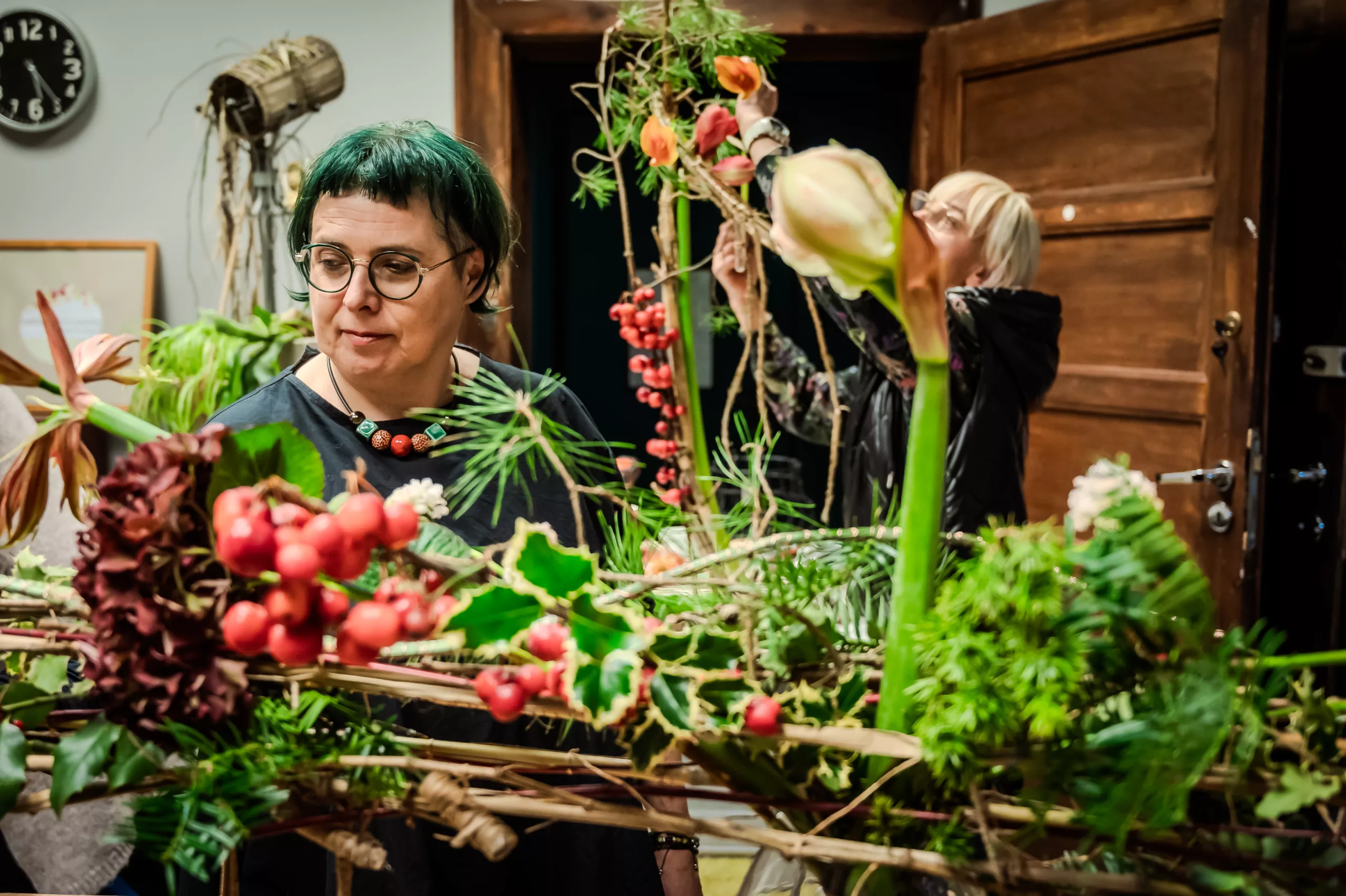 „To był tydzień, który zostanie w każdej cząstce mnie. W Kwitnących Horyzontach gościłam Gregora Lerscha, największą postać światowej florystyki, mistrza, nauczyciela i inspirację od lat. Człowieka, który łączy mistrzostwo formy z uważnością, humorem i niezwykłym ciepłem wobec ludzi. Ten tydzień to czas przeogromnej radości i silnych emocji. Spełnienie marzenia, ale też ogromna odpowiedzialność. Tydzień intensywnej pracy, pełnego skupienia i koordynacji w trzech językach, z dbałością o wszystko – od przestrzeni i materiały, przez rytm dnia, po energię grupy. To spotkanie miało dla mnie jeszcze jeden, bardzo osobisty wymiar. Ostatni raz spotkaliśmy się w 2007 roku, podczas adwentowej wystawy Mistrza. Wtedy byłam w zupełnie innym miejscu swojej drogi. Dziś spotykamy się ponownie, po latach nauki, zbierania doświadczeń i dojrzewania. Już nie tylko jako uczennica, ale jako gospodyni przestrzeni, w której wiedza, wrażliwość i proces mogą krążyć dalej. Od lat pracuję w oparciu o filozofię inspiracji płynącej z natury. Uważnego patrzenia, podążania za rytmem, formą i sensem, który już tam jest. Nie kopiowania natury, lecz rozumienia jej zasad. Nie dominacji formy, lecz dialogu z materiałem, przestrzenią i procesem. To właśnie ta filozofia od początku była mi bliska w nauczaniu Gregora Lerscha. I myślę, że dlatego to spotkanie, po latach było tak spójne i naturalne. Bo spotkały się nie tylko osoby, ale wspólne wartości i sposób myślenia. Dziękuję za zaufanie, obecność i tworzenie. Takie momenty nadają sens drodze, którą idę od lat” – relacjonowała Monika Bębenek.