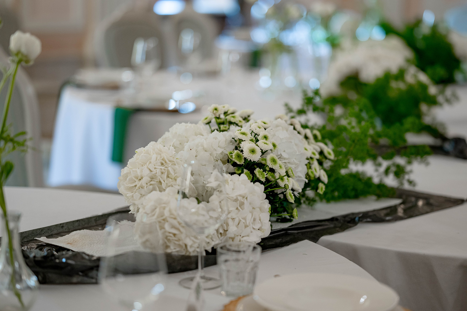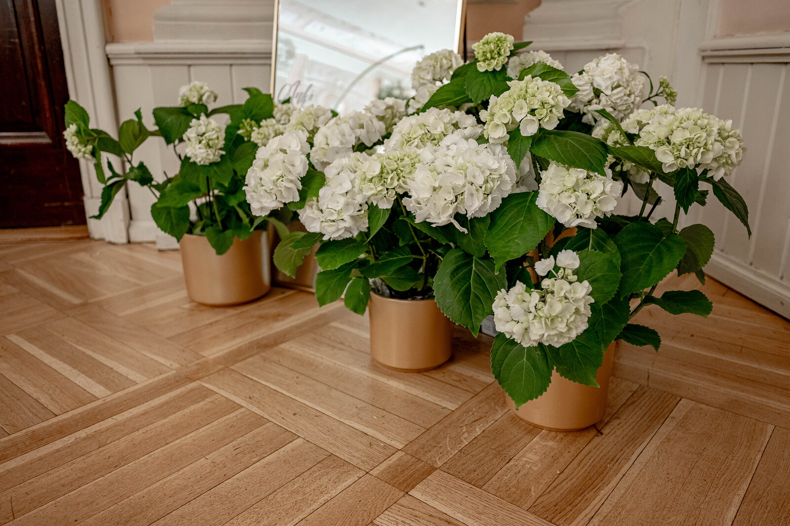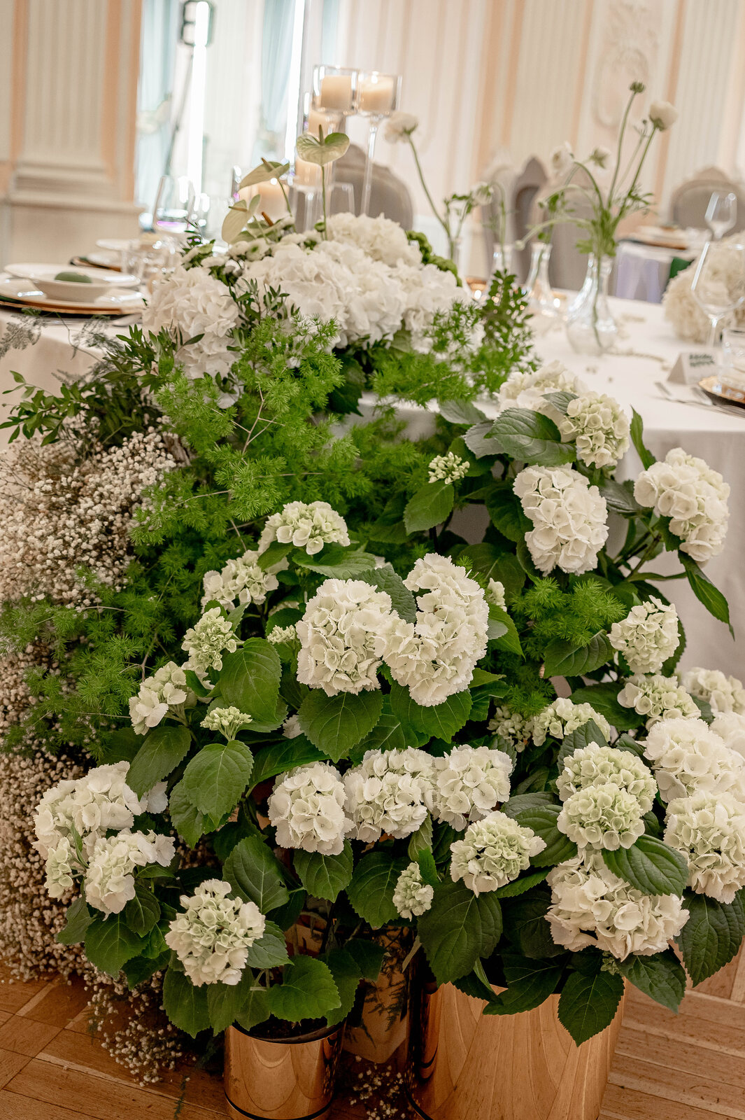 Wykorzystane w dekoracjach kwiaty to chryzantemy cięte m.in. santini oraz hortensje, zarówno doniczkowe, jak i cięte z kategorii „Fresh”. Nazwa ta odnosi się do kwiatów, które ścięto w ich pierwotnym, „czystym” kolorze. W tym przypadku jest to biel.