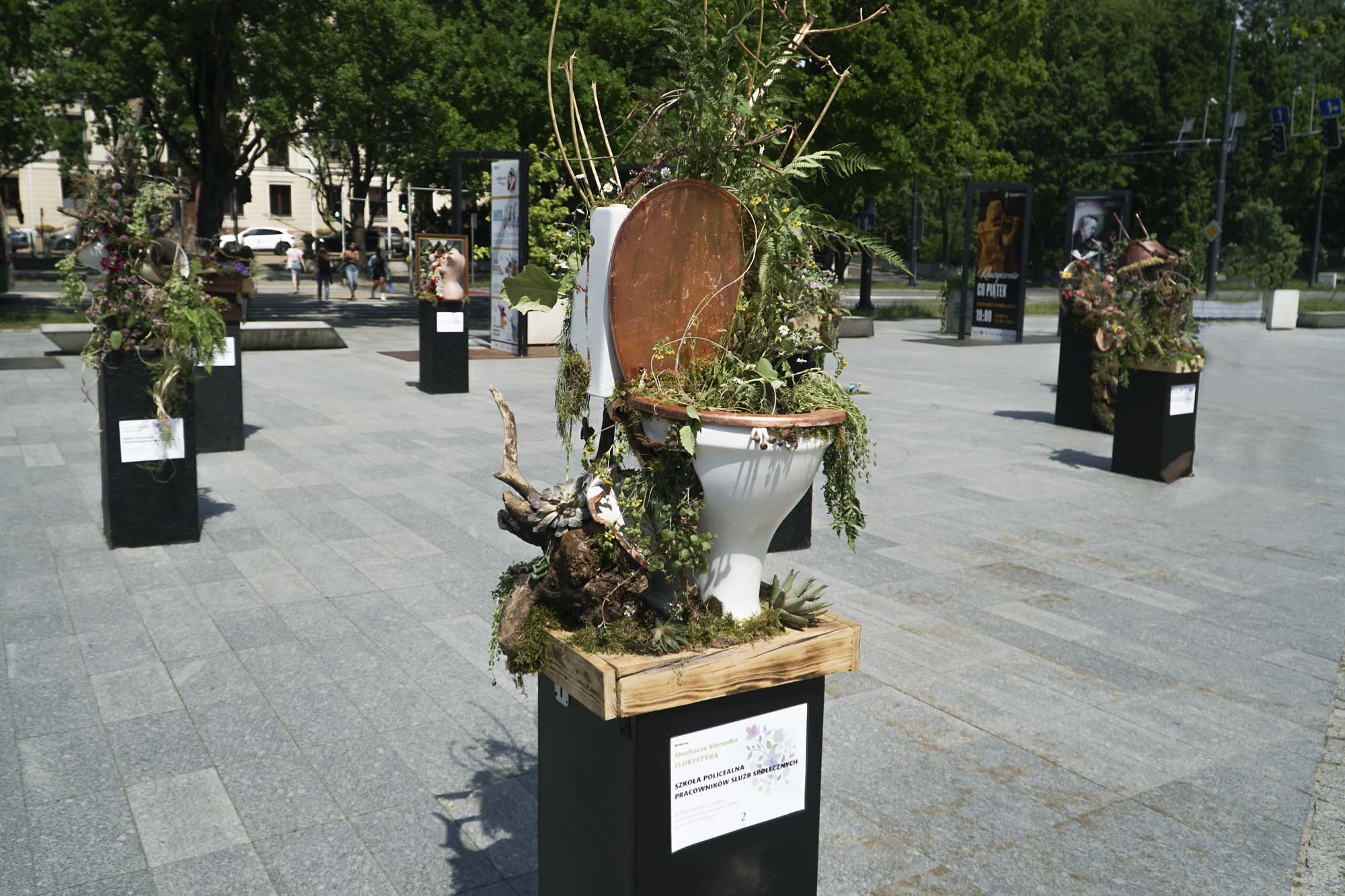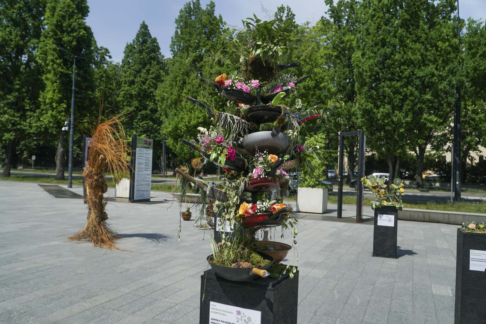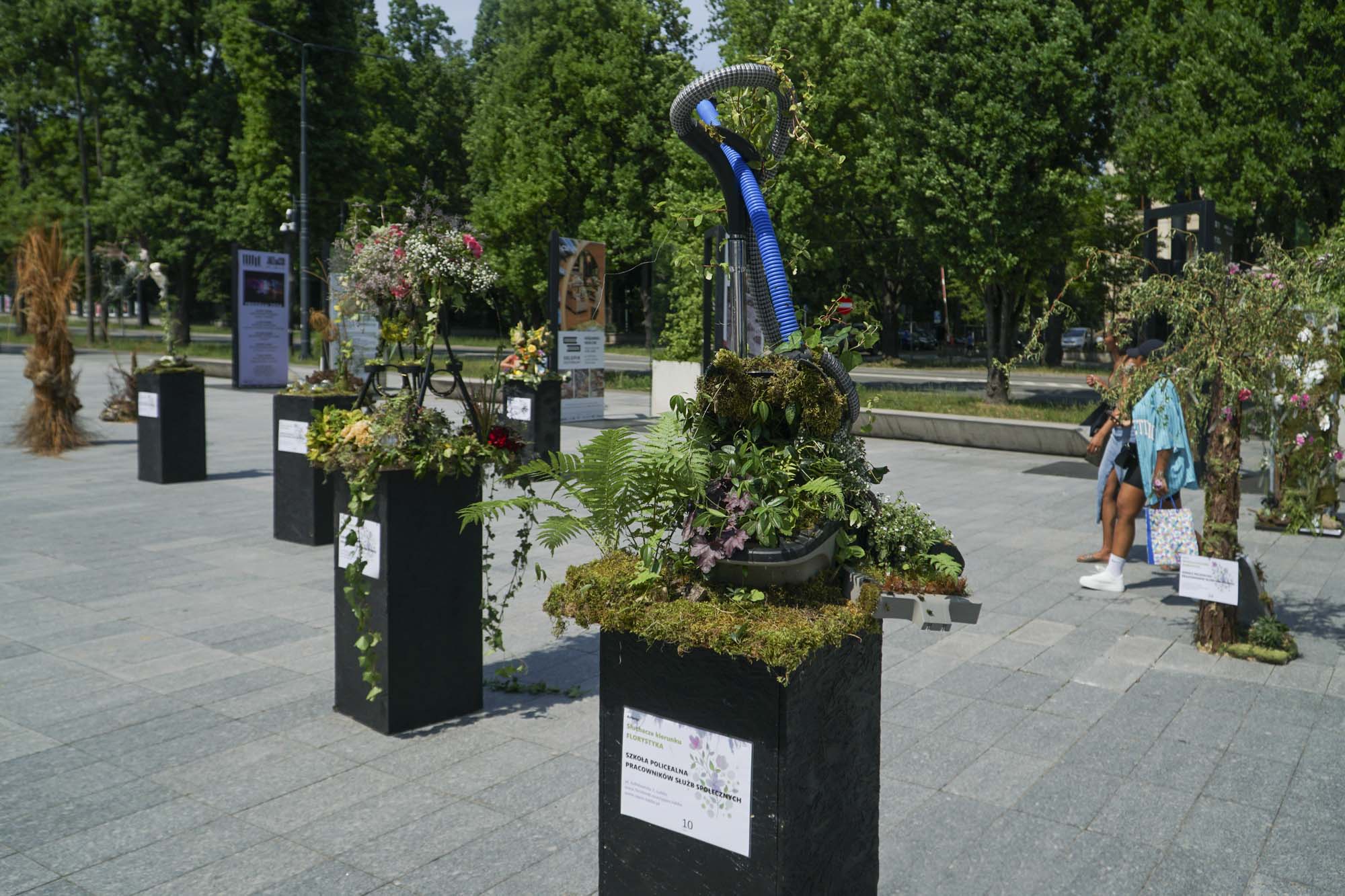 W dniach 25-26 maja br. na Placu Teatralnym w Lublinie można było podziwiać wystawę ponad 50 prac słuchaczy florystyki ze Szkoły Policealnej Pracowników Służb Społecznych (SPPSS) im. A. Bączkowskiego oraz studentów Architektury Krajobrazu KUL. Uczniowie mierzyli się z interpretacją haseł, takich jak naturalizacja, przyroda w mieście czy postapokalipsa. Powstały ciekawe wizje przedmiotów, które poddały się naturalnym procesom porastania i dominacji przyrody. Łącznikiem pomiędzy różnymi tematami stały się mchy i wątrobowce, a także inne rośliny pionierskie, które świetnie odnajdują się w skrajnych warunkach wegetacji.